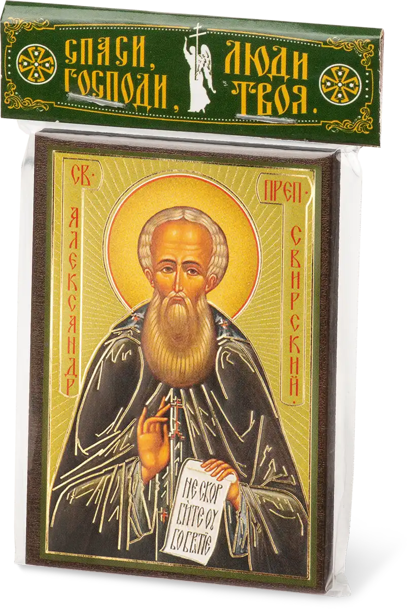 Икона "Александр Свирский" 6х9 на МДФ-6