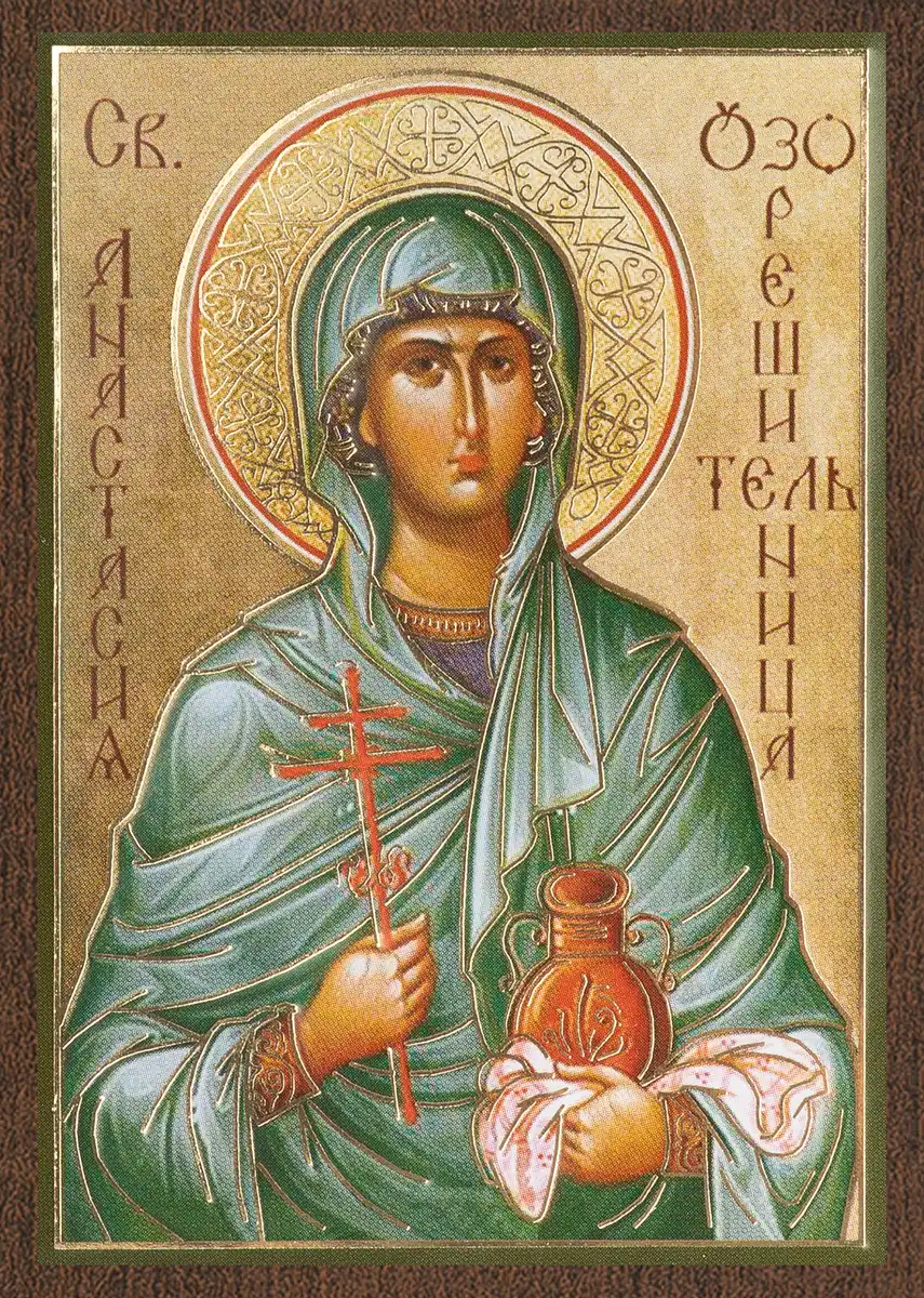 Икона "Анастасия Узорешительница" 6х9 на МДФ-6