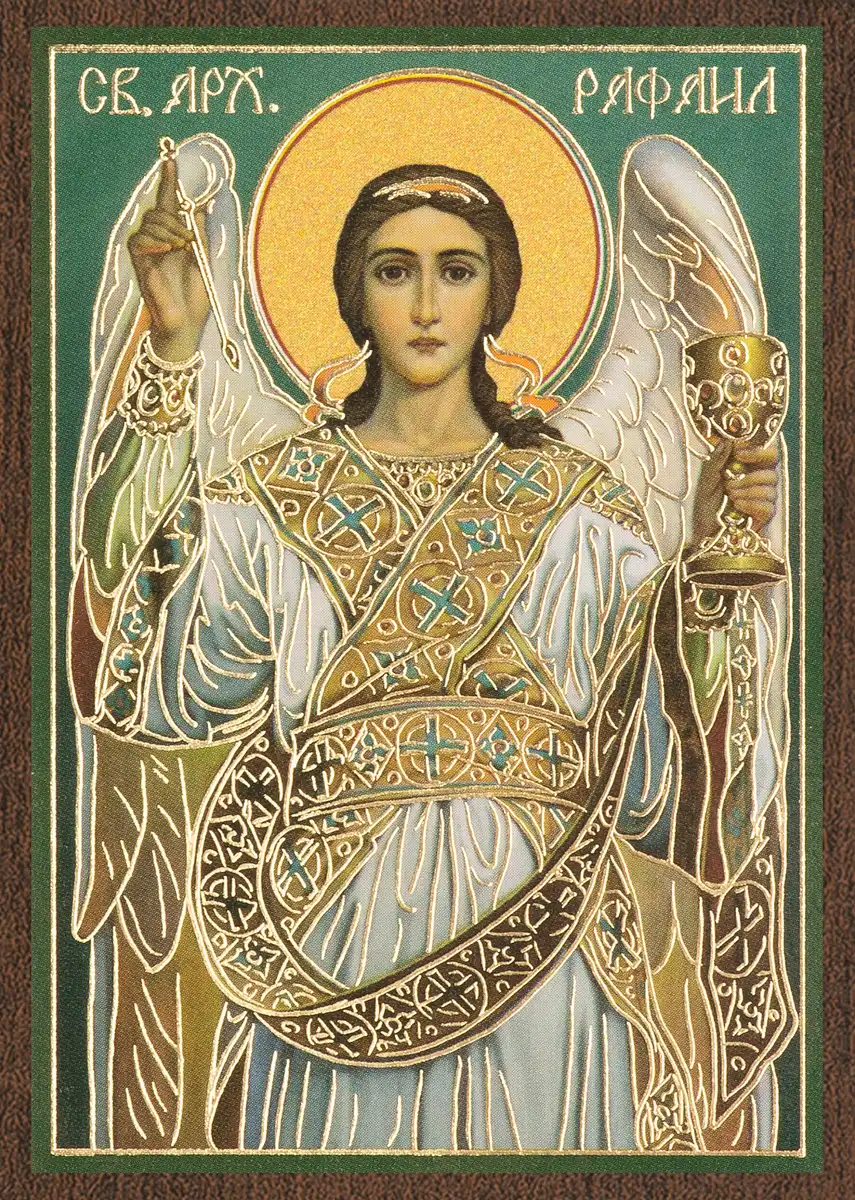 Икона "Архангел Рафаил" 6х9 на МДФ-6
