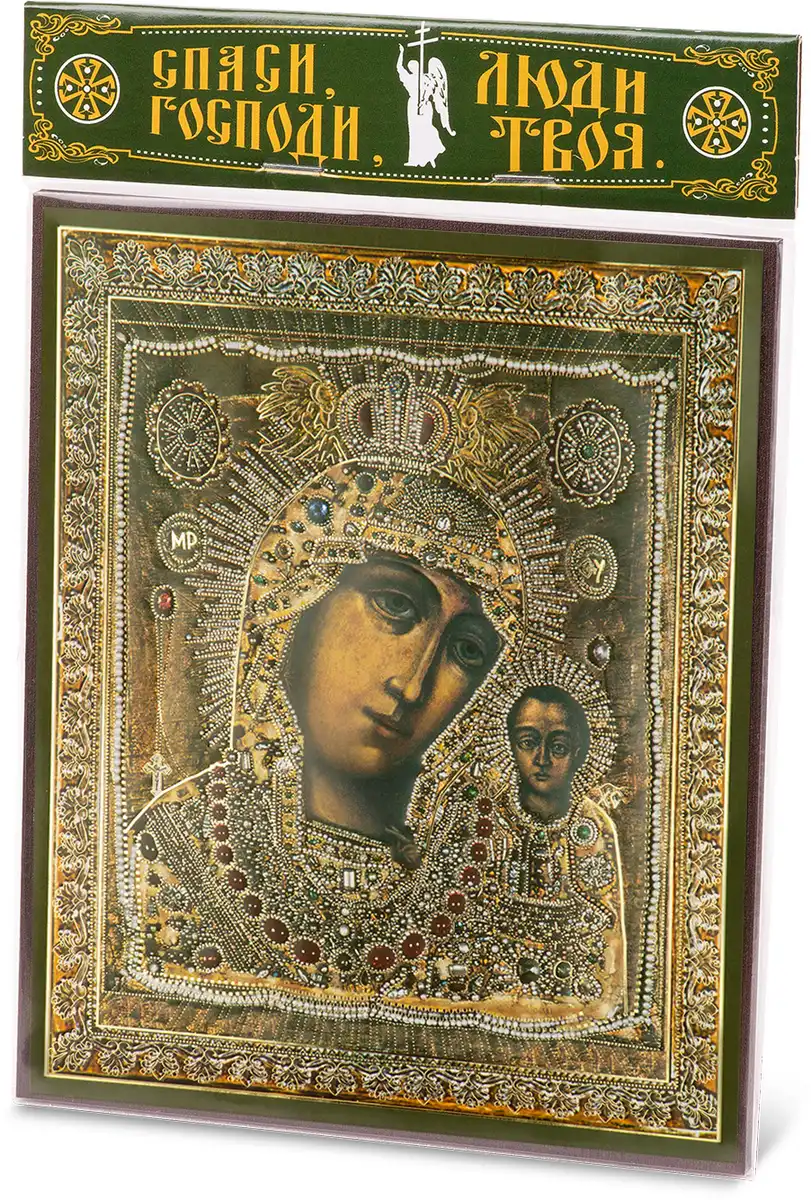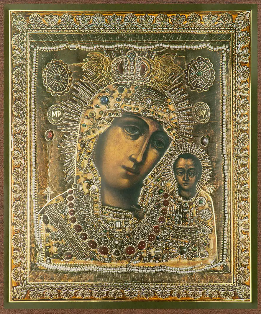 Икона БМ "Казанская" в ризе 15х18 на МДФ-6