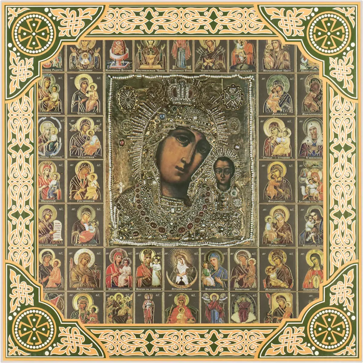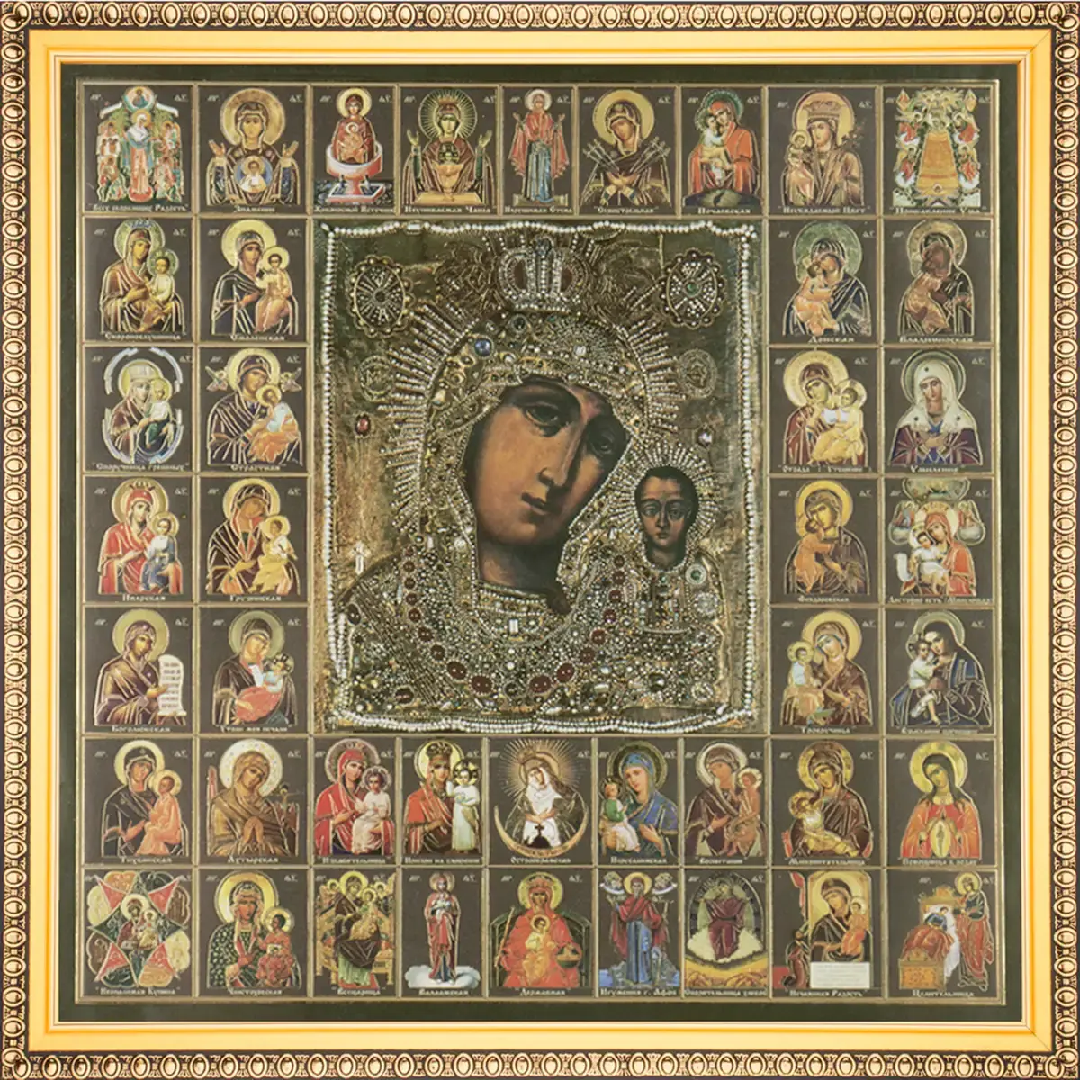 Икона БМ "Казанская" в ризе и Собор Богородицы, рама 28х28, в коробке
