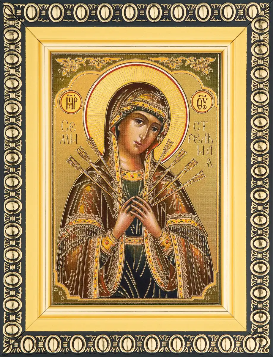 Икона БМ "Семистрельная" 6х9 в раме 8х11