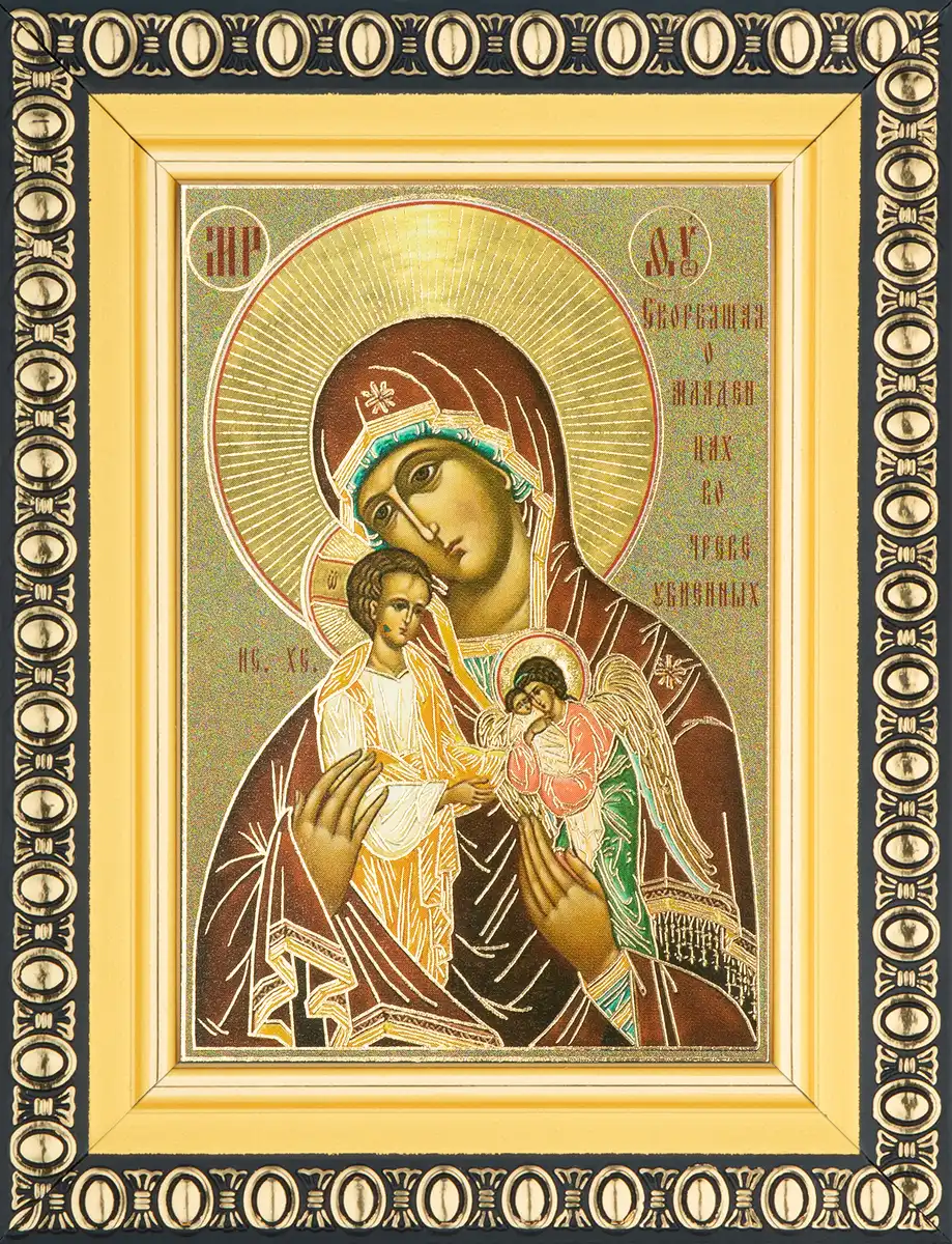 Икона БМ "Скорбящая о младенцах, во чреве убиенных" 6х9 в раме 8х11