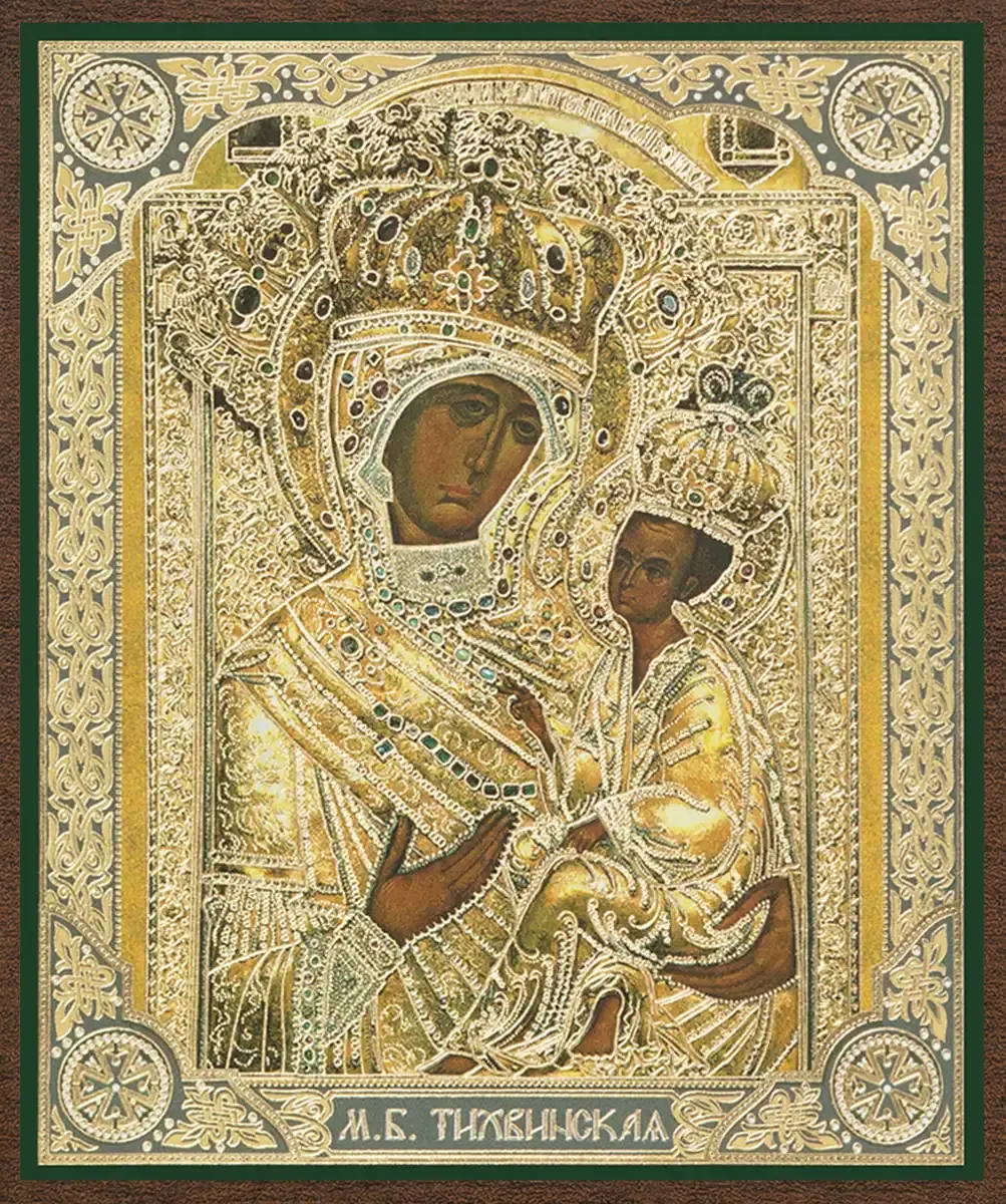 Икона БМ "Тихвинская" в ризе 10х12 на МДФ-6