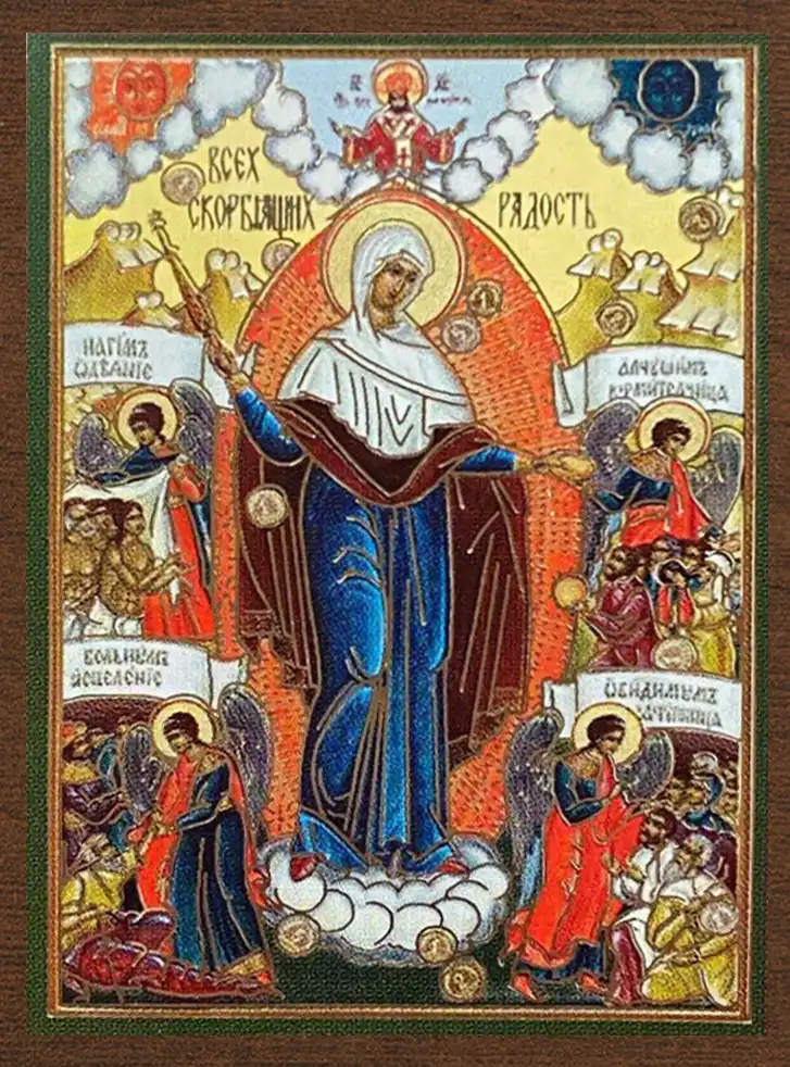 Икона БМ "Всех скорбящих радость", вид 2, 4х6см