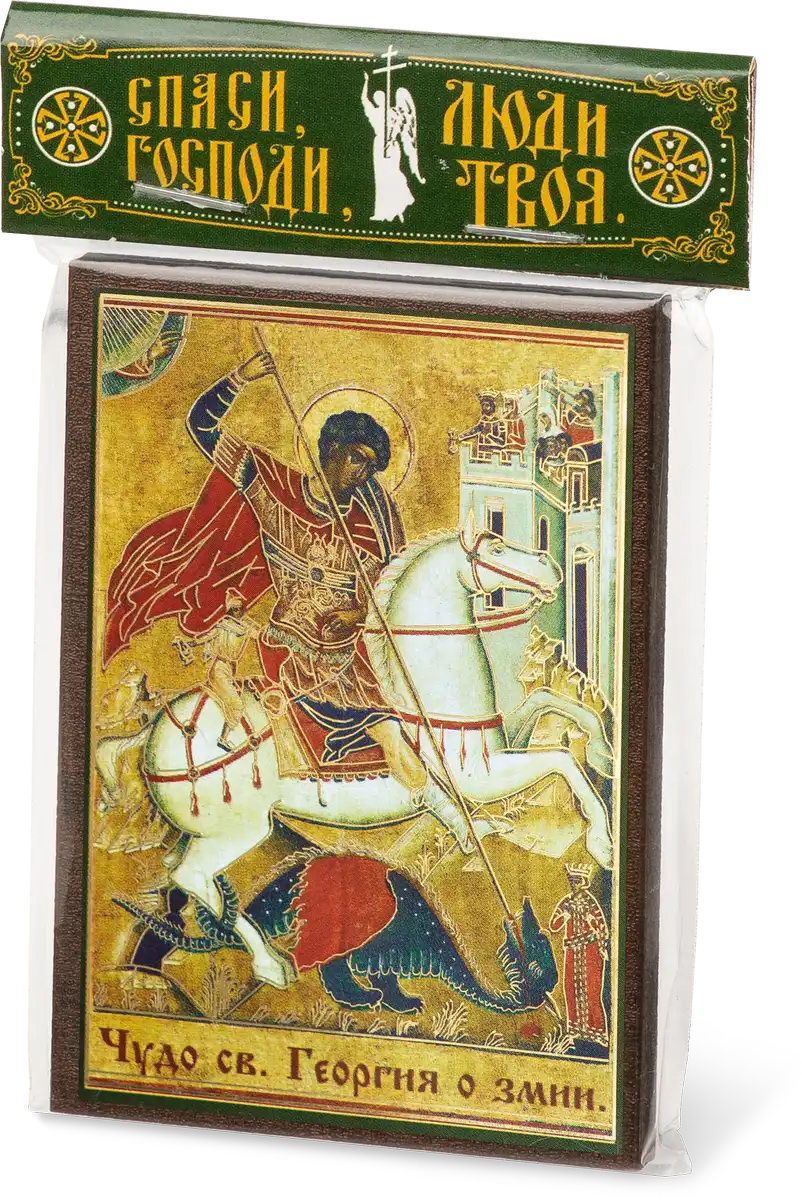 Икона "Чудо Георгия о змии" 6х9 на МДФ-6