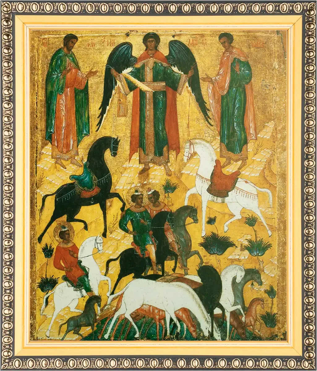 Икона "Чудо о Флоре и Лавре" 15х18 в раме 18х21
