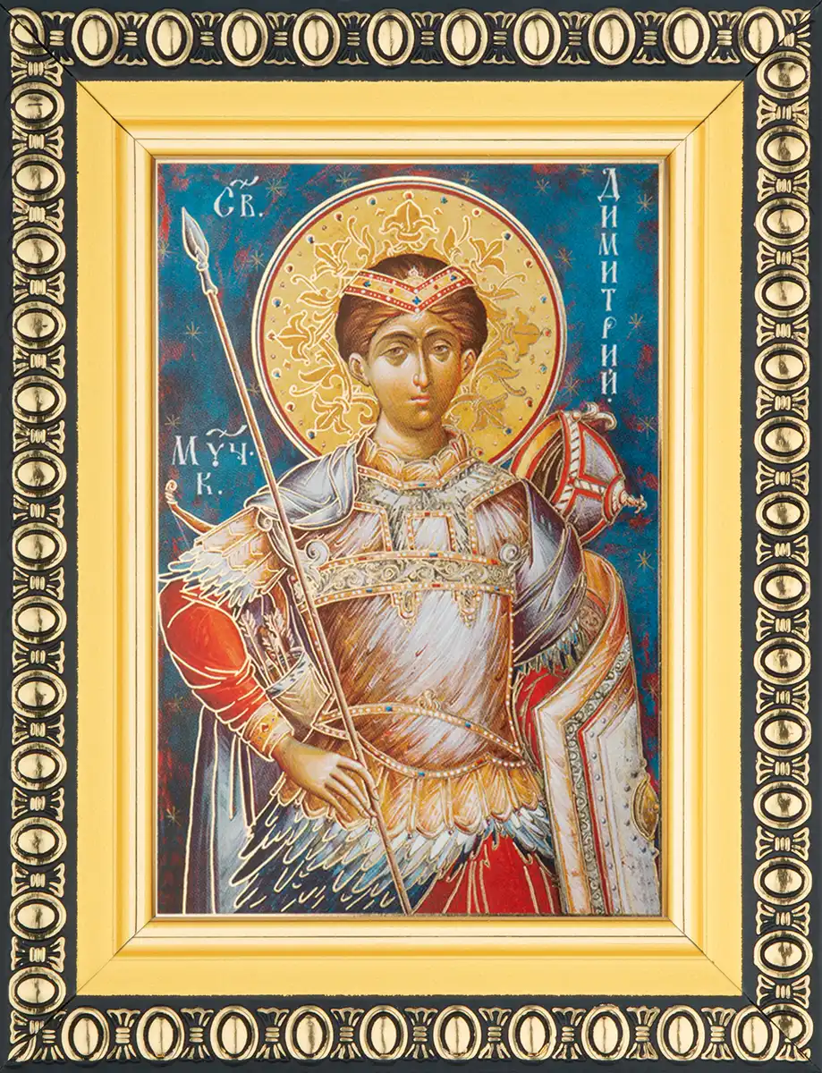 Икона "Дмитрий Солунский" 6х9 в раме 8х11