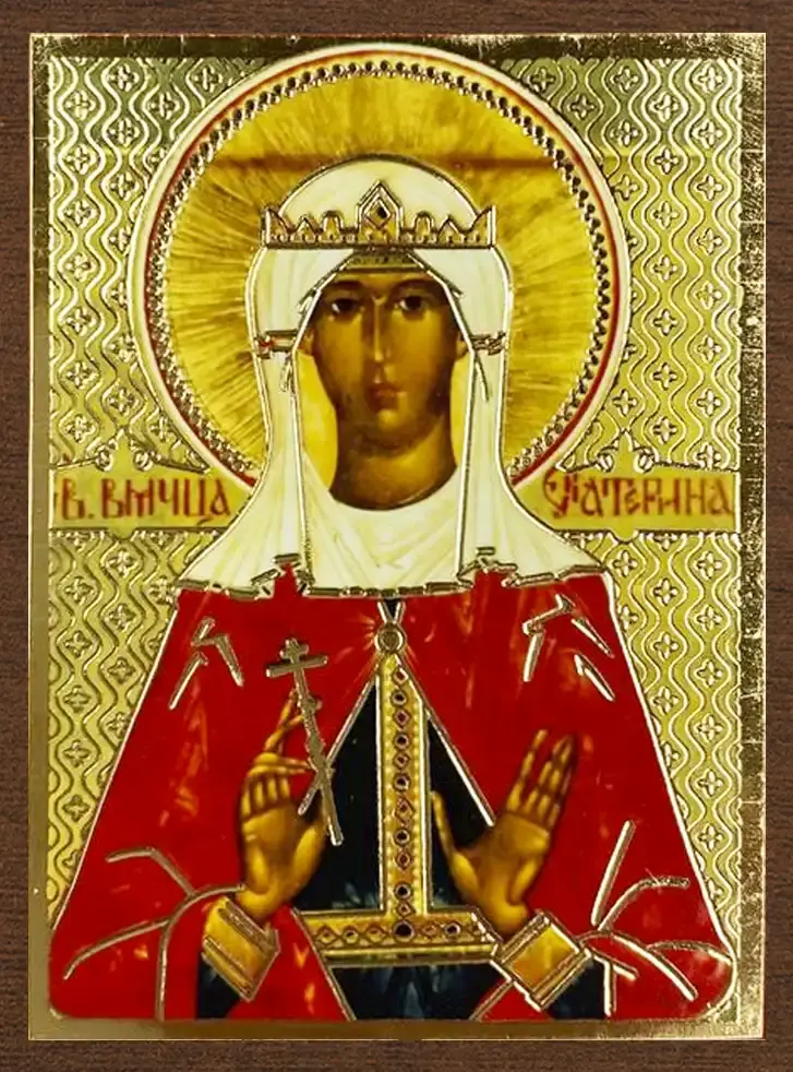 Икона "Екатерина Александрийская" 4х6 на МДФ-6