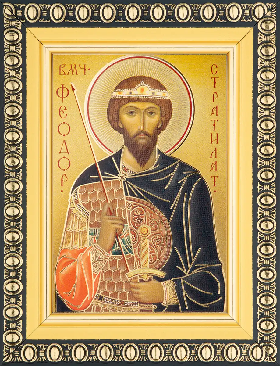 Икона "Феодор Стратилат" 6х9 в раме 8х11