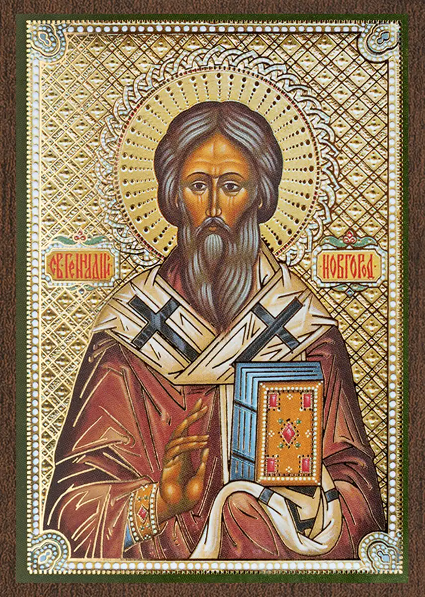 Икона "Геннадий Новгородский" 6х9 на МДФ-6