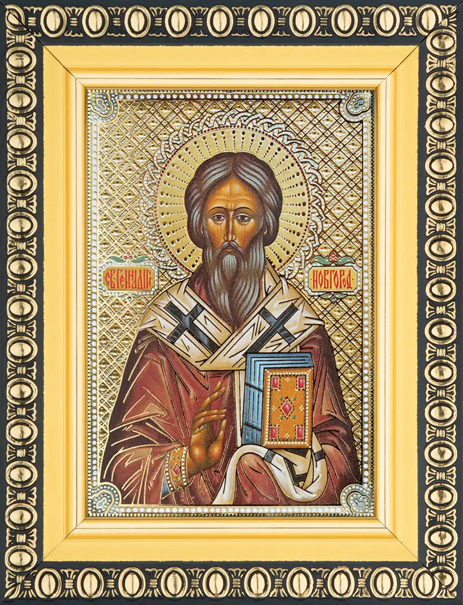Икона "Геннадий Новгородский" 6х9 в раме 8х11