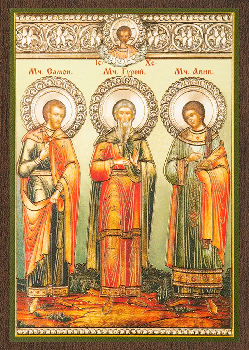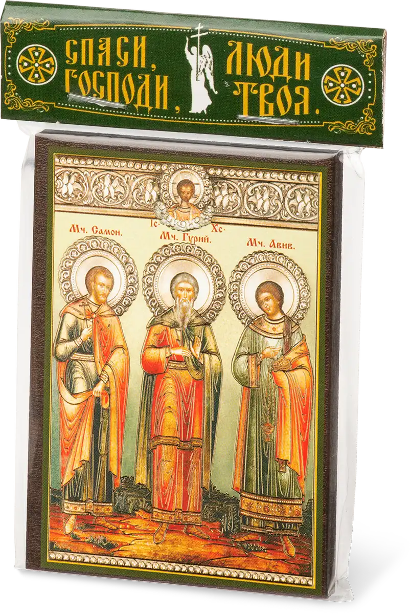 Икона "Гурий, Самон и Авив" 6х9 на МДФ-6