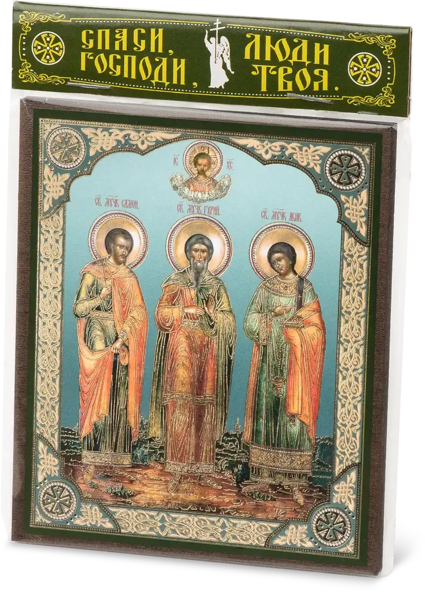 Икона "Гурий, Самон и Авив", вид 2, 10х12 на МДФ-6