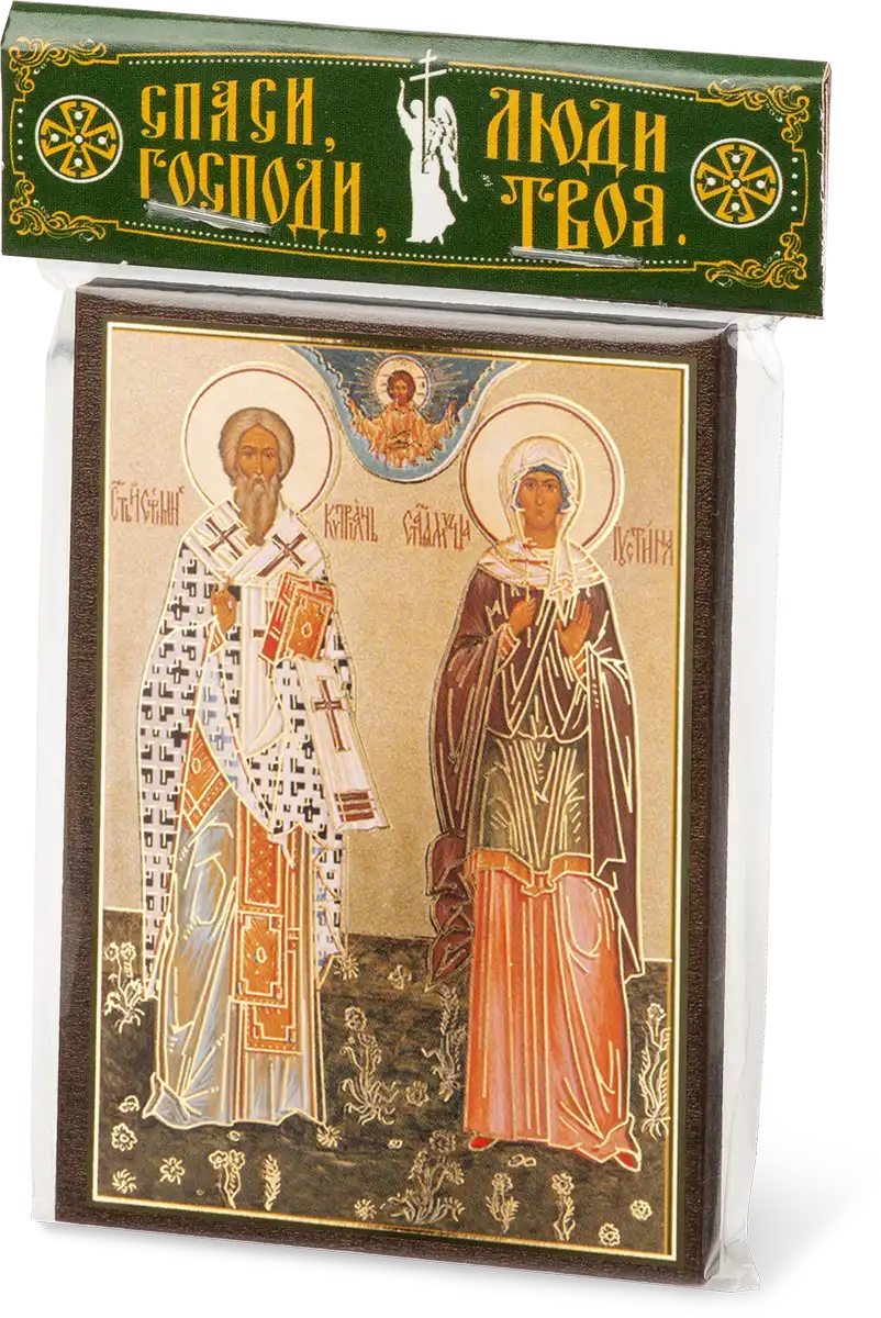 Икона "Киприан и Иустина" 6х9 на МДФ-6