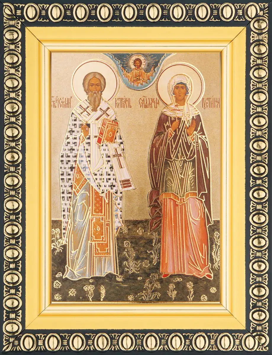 Икона "Киприан и Иустина" 6х9 в раме 8х11
