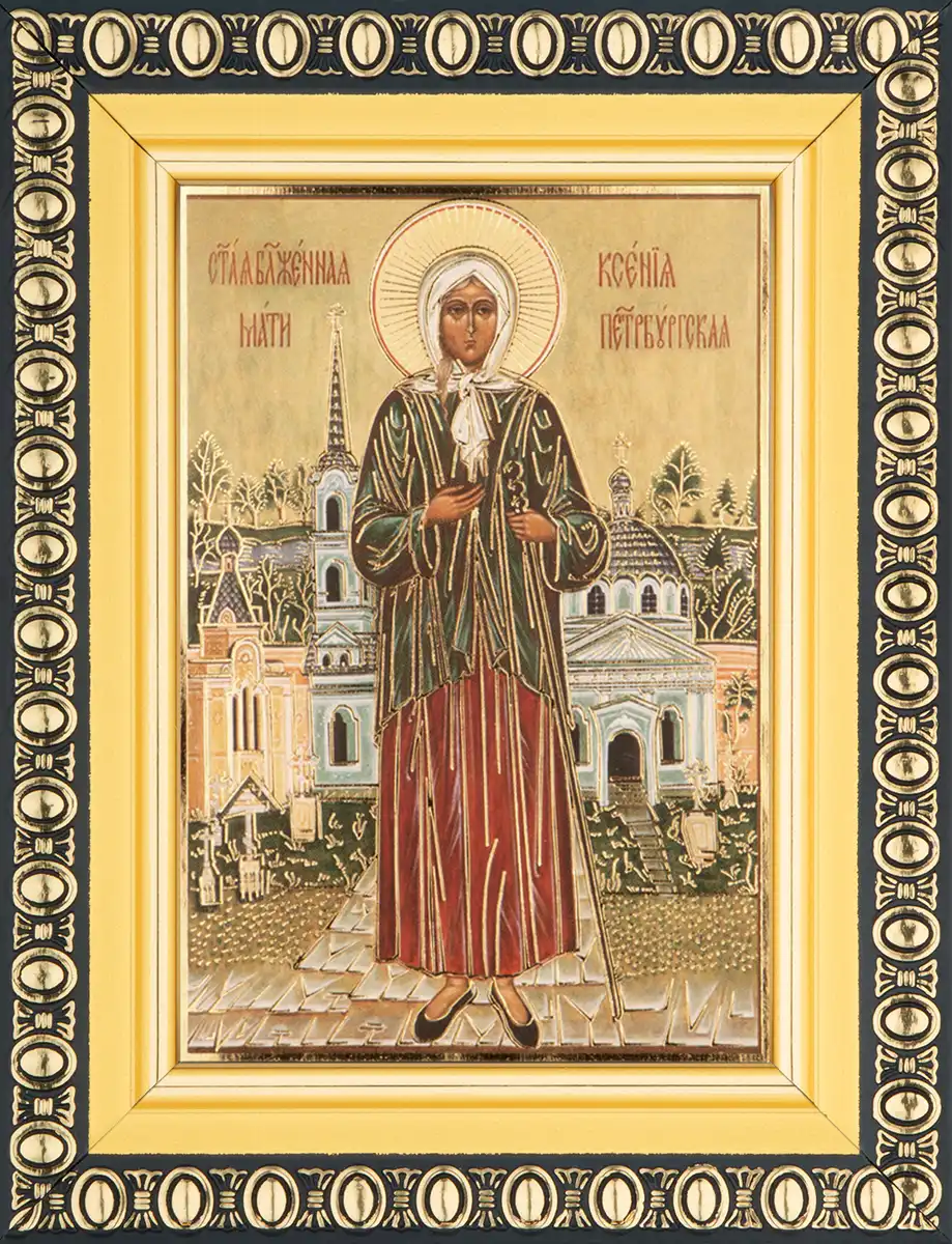 Икона "Ксения Петербургская" 6х9 в раме 8х11