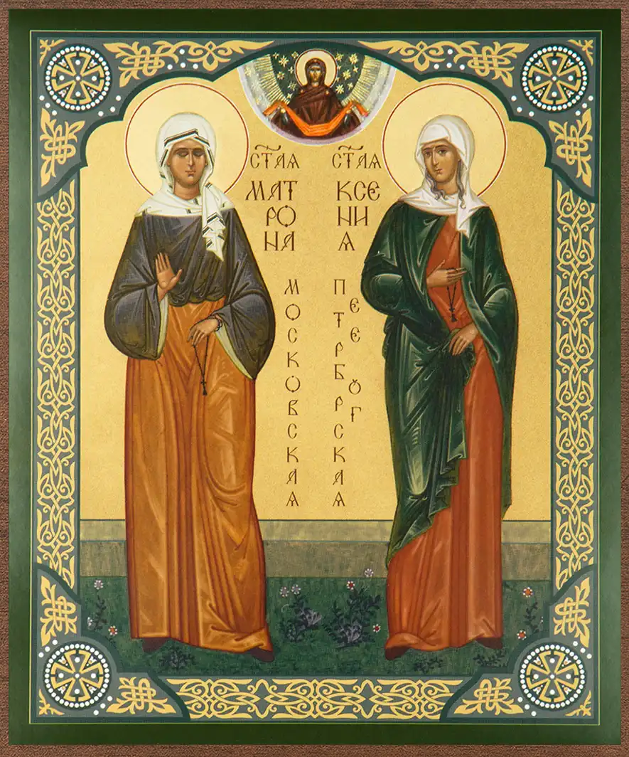 Икона "Ксения Петербургская и Матрона Московская" 15х18 на МДФ-6