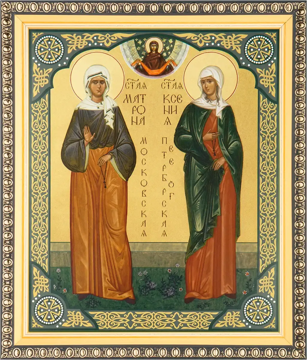 Икона "Ксения Петербургская и Матрона Московская" 15х18 в раме 18х21