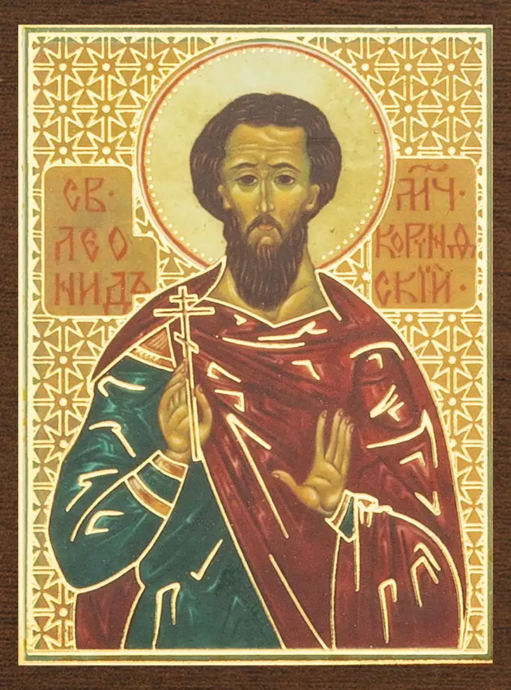 Икона "Леонид Коринфский" 4х6 на МДФ-6