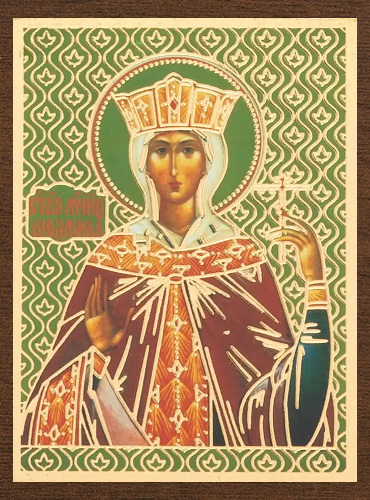 Икона "Людмила Чешская" 4х6 на МДФ-6
