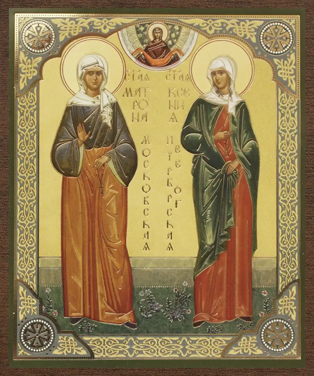 Икона "Матрона Московская и Ксения Петербургская" 10х12 на МДФ-6
