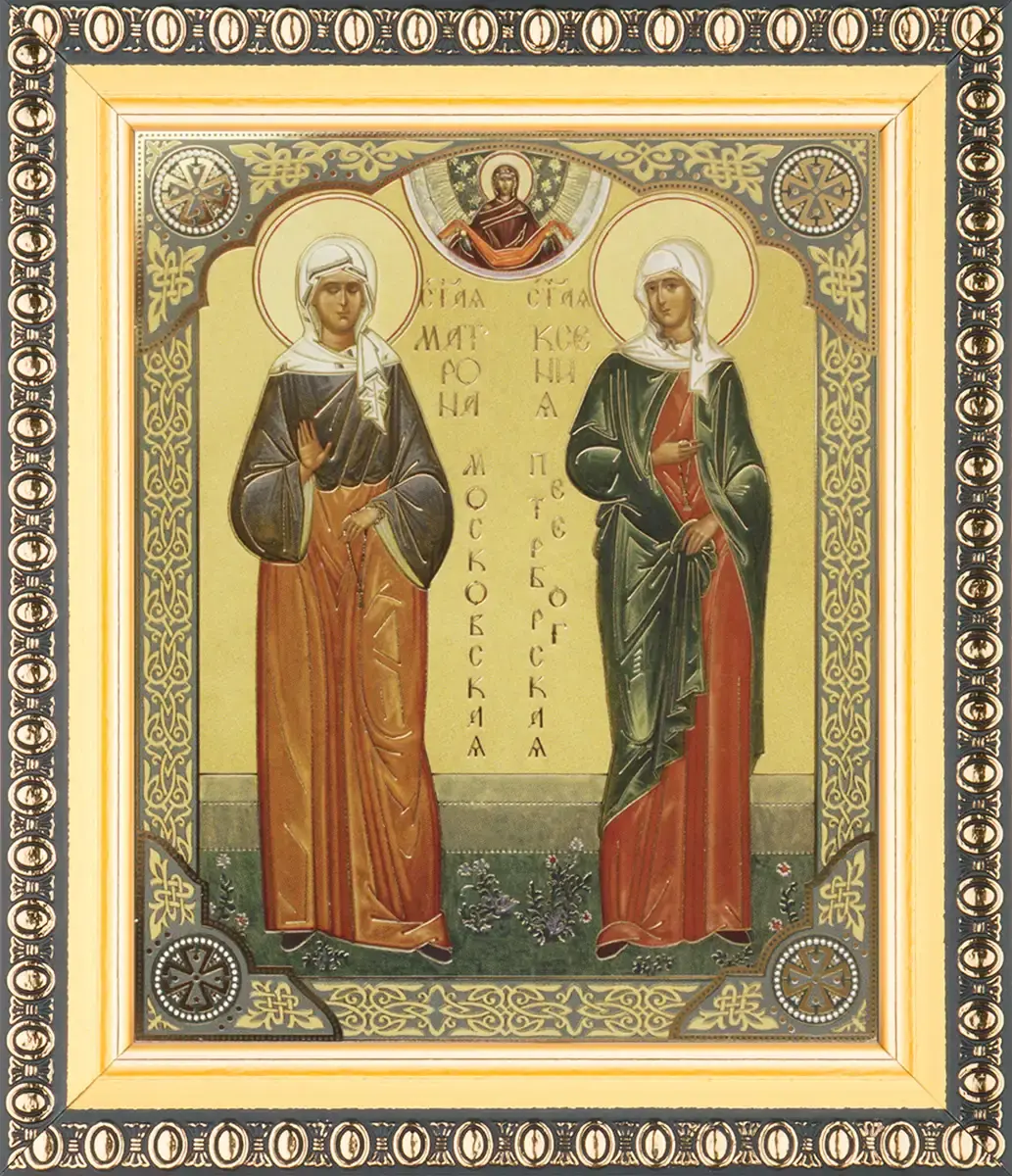 Икона "Матрона Московская и Ксения Петербургская" 10х12 в раме 13х15