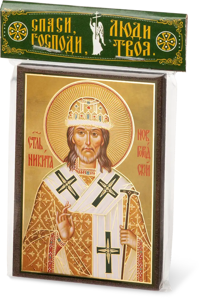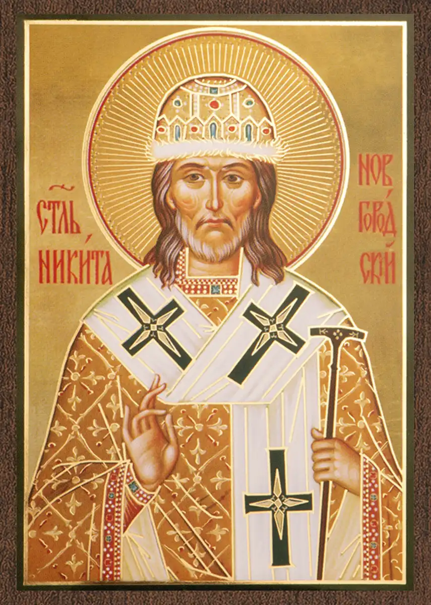 Икона "Никита Святитель (Новгородский)" 6х9 на МДФ-6