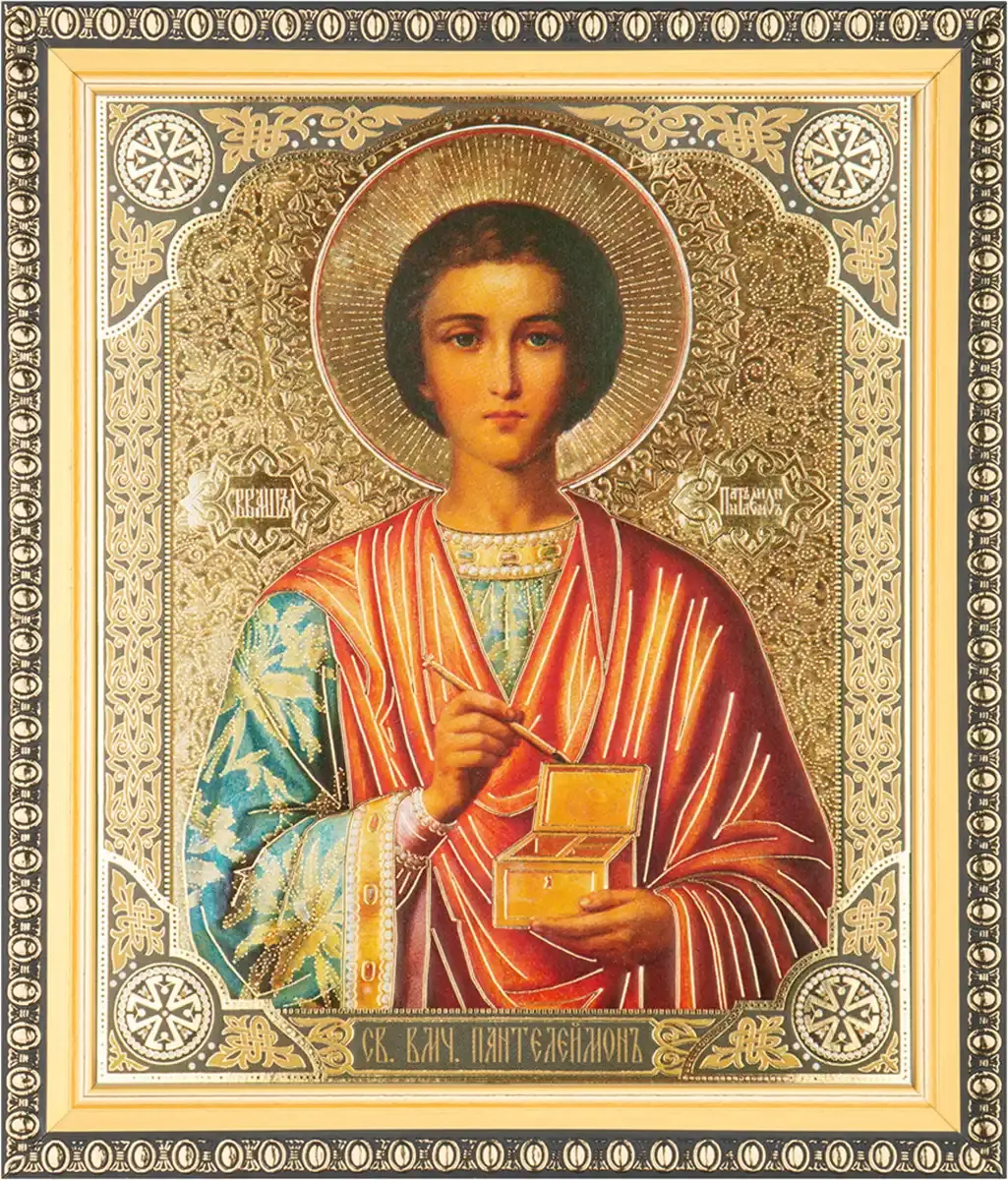 Икона "Пантелеймон Целитель", вид 3, 15х18 в раме 18х21
