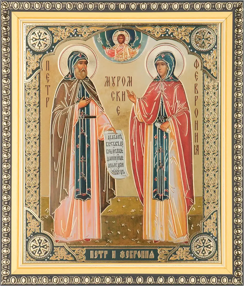 Икона "Петр и Феврония", вид 2, 15х18 в раме 18х21