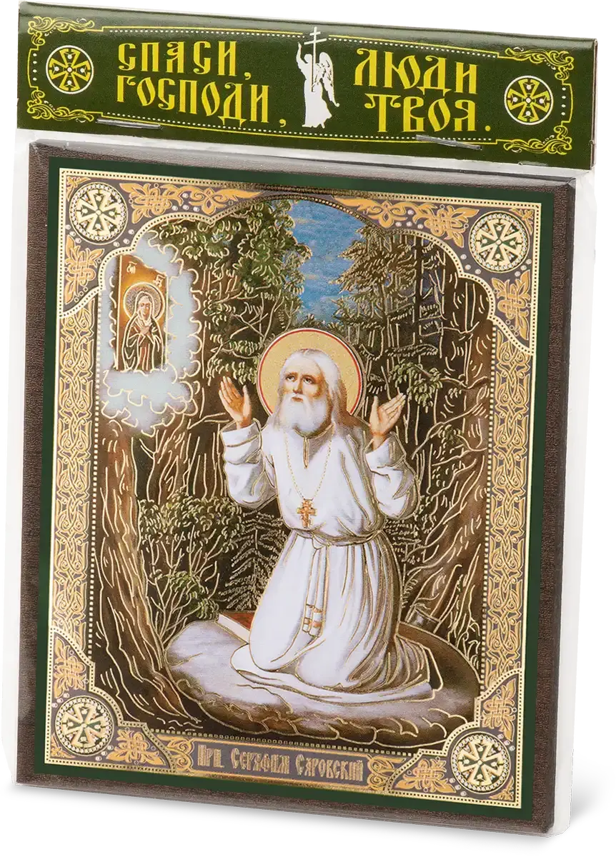 Икона "Серафим Саровский" на камне, 10х12 на МДФ-6