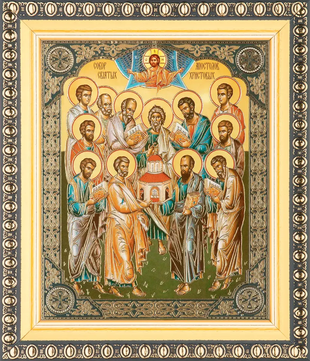 Икона "Собор двенадцати Апостолов", вид 2, 10х12 в раме 13х15