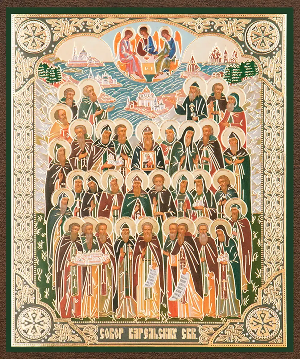 Икона "Собор Карельских святых" 10х12 на МДФ-6