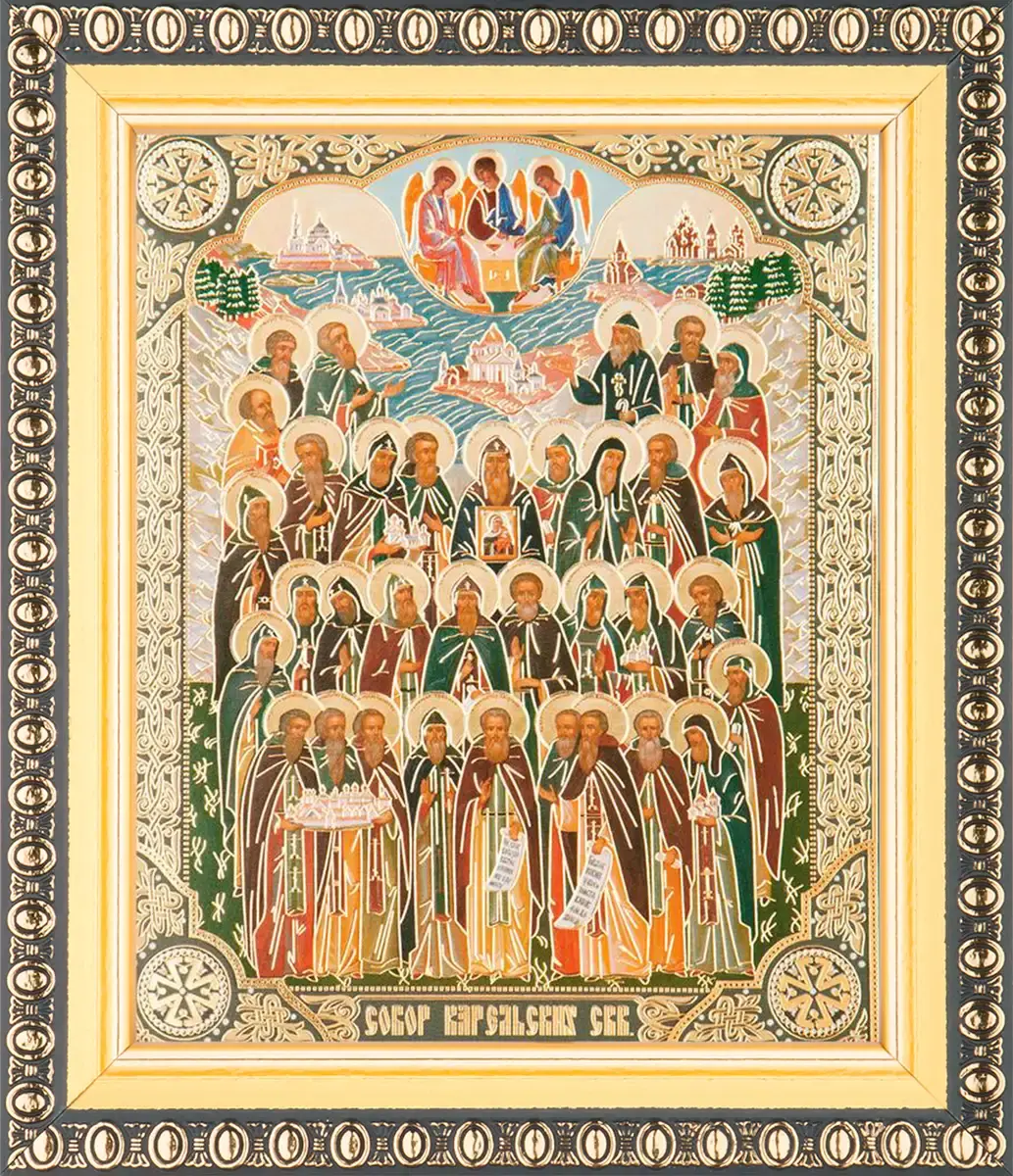 Икона "Собор Карельских святых" 10х12 в раме 13х15