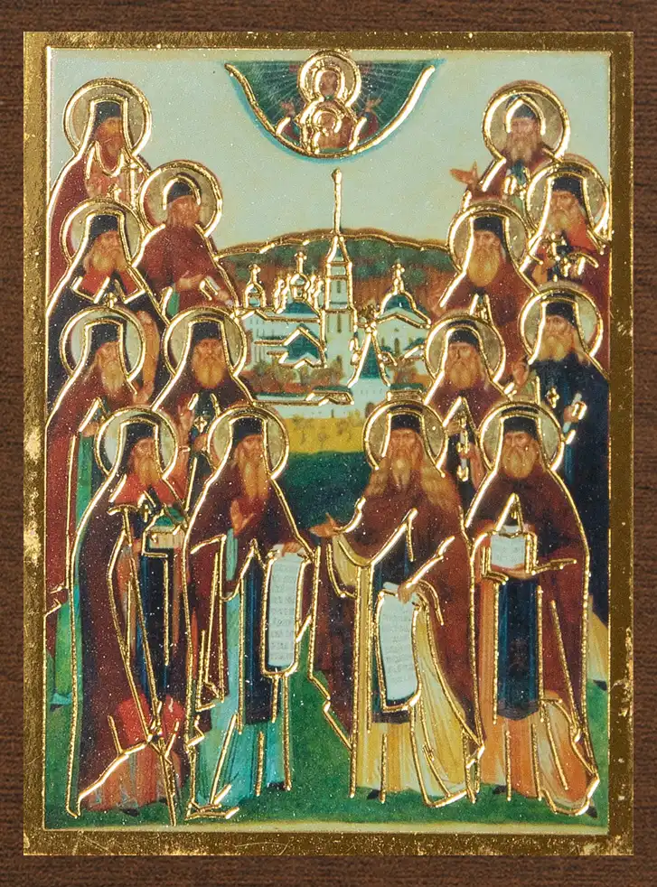 Икона "Собор Оптинских Старцев" 4х6 на МДФ-6
