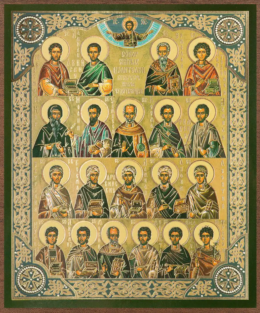 Икона "Собор Целителей" 15х18 на МДФ-6
