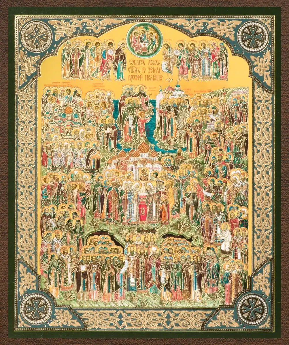 Икона "Собор всех святых земли Русской" 10х12 на МДФ-6