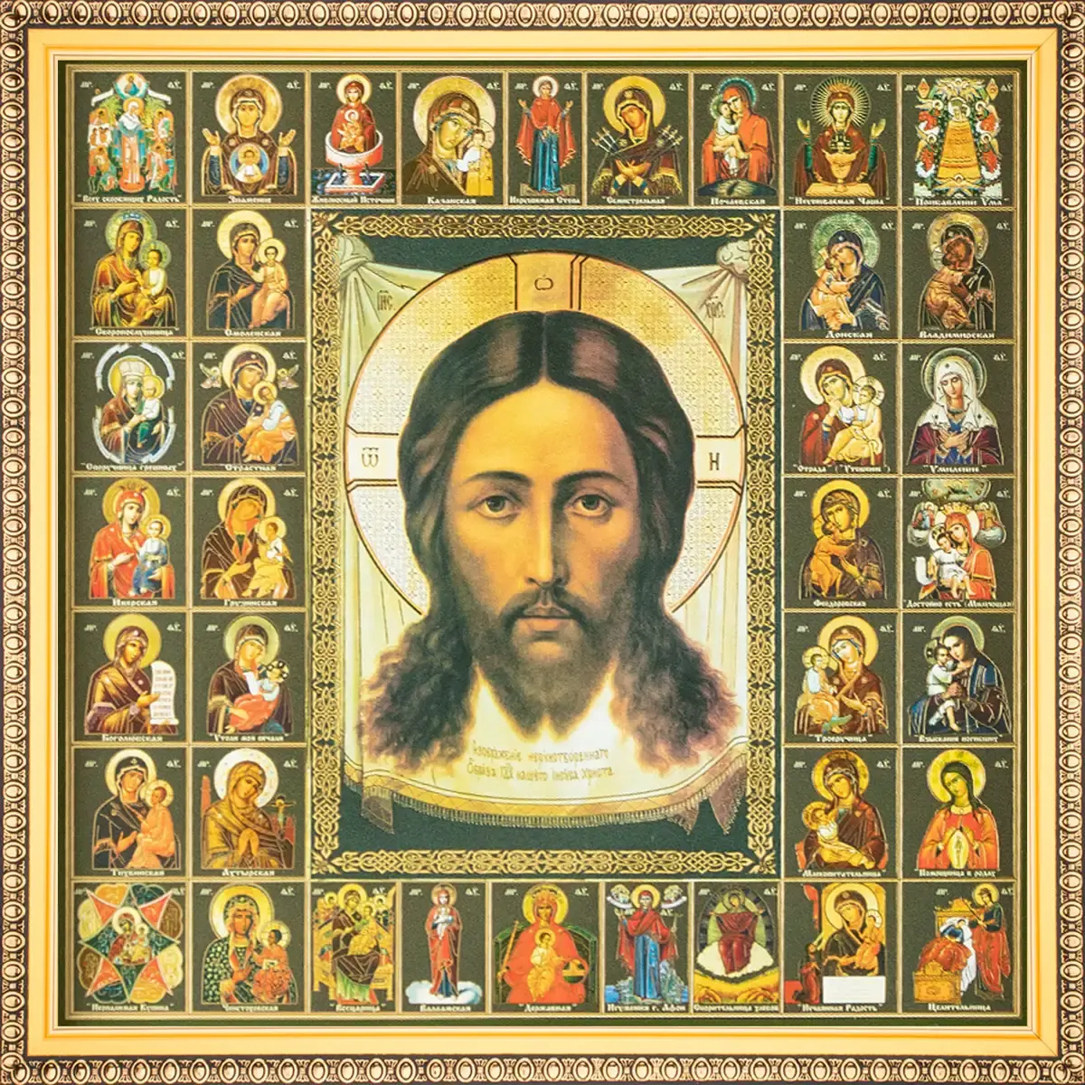 Икона "Спас Нерукотворный" и Собор Богородицы, рама 28х28, в коробке