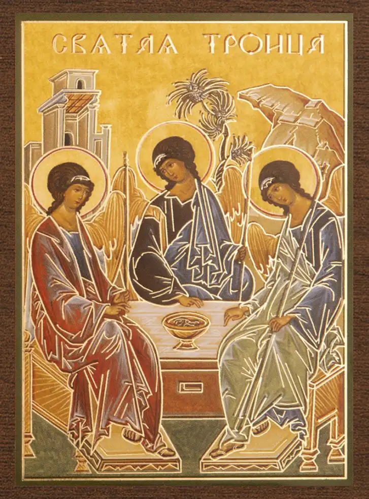 Икона "Святая Троица", вид 2, 4х6 на МДФ-6