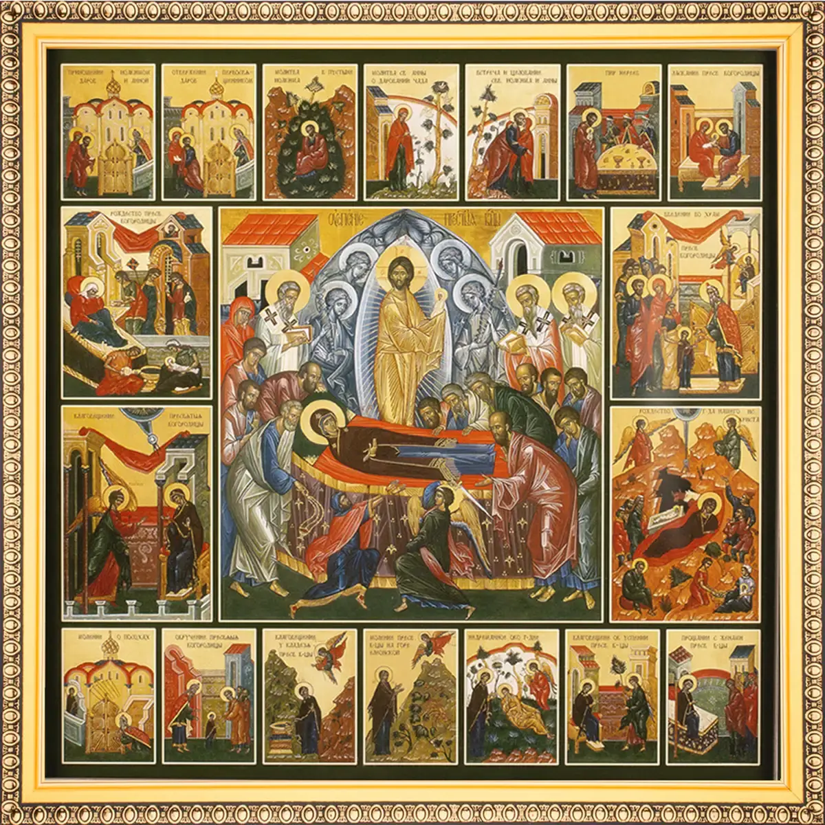 Икона "Успение Пресвятой Богородицы" с житиями, рама 28х28, в коробке
