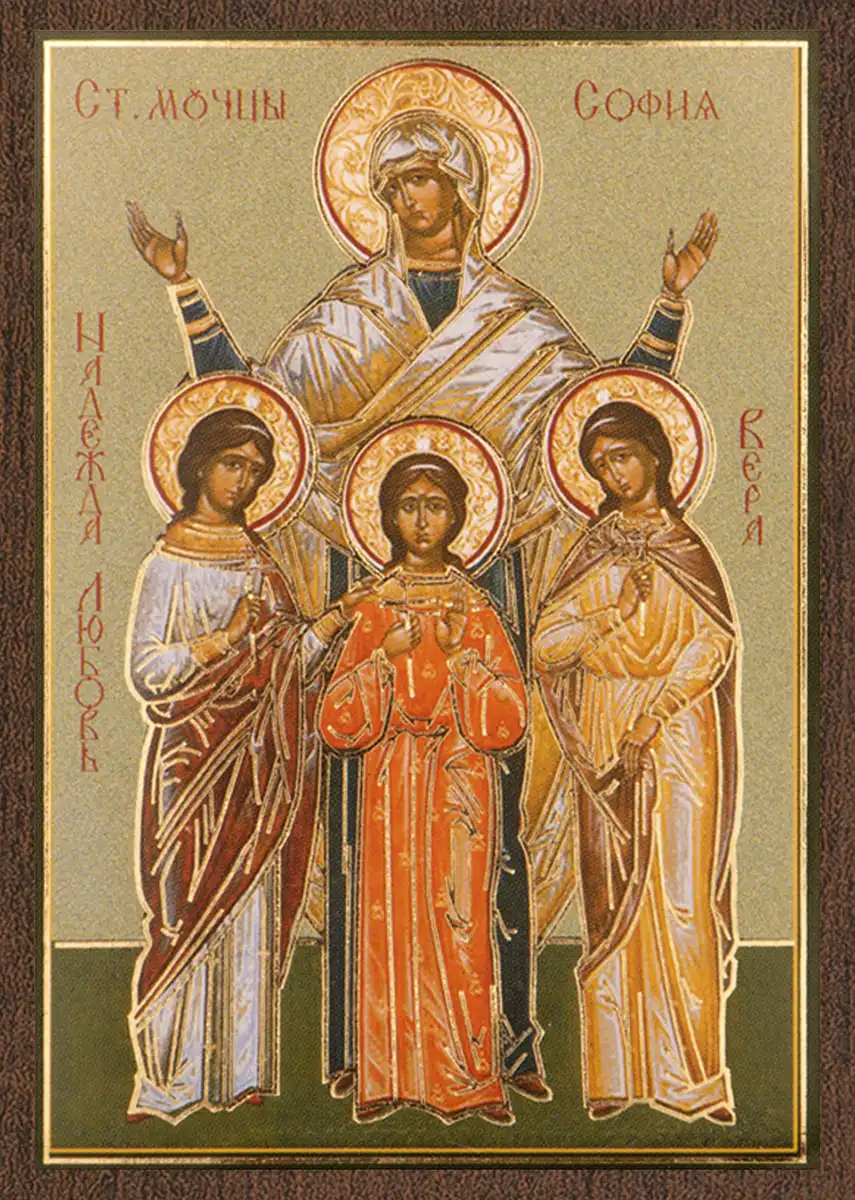 Икона "Вера, Надежда, Любовь и София" 6х9 на МДФ-6