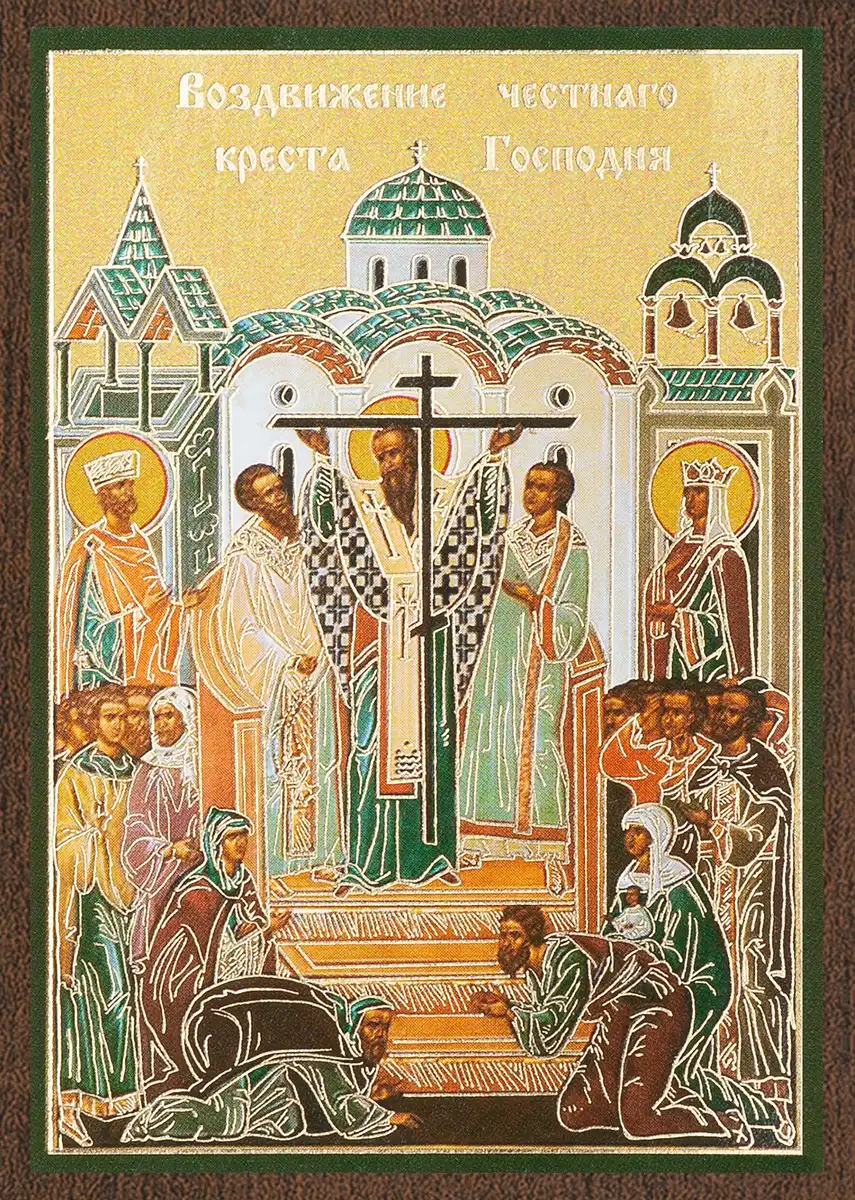 Икона "Воздвижение Честного Креста Господня" 6х9 на МДФ-6