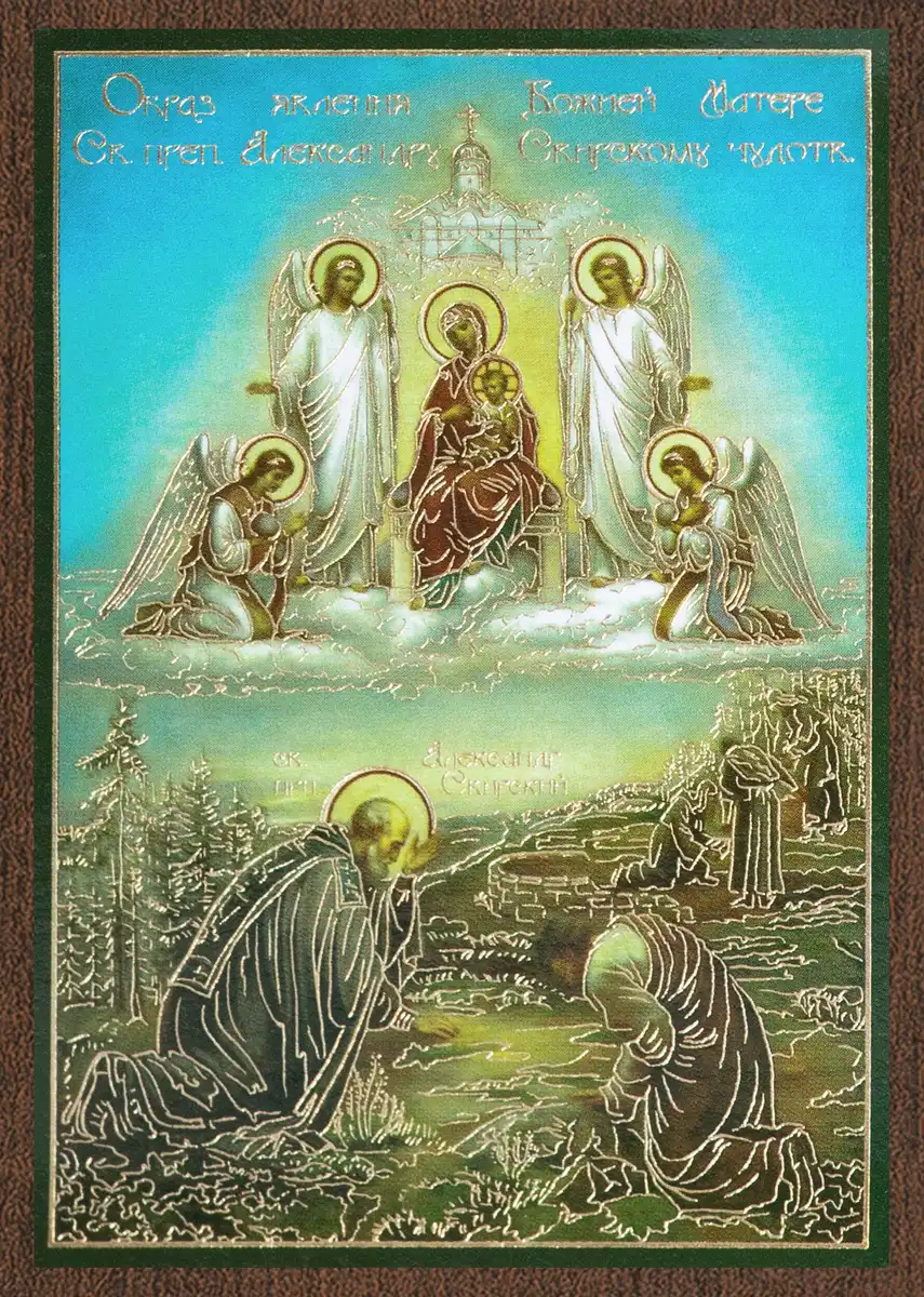 Икона "Явление Богородицы Александру Свирскому" 6х9 на МДФ-6