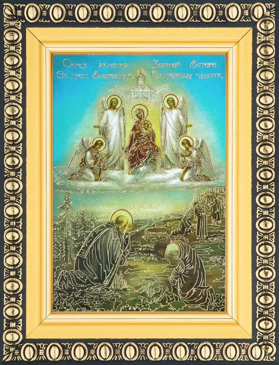 Икона "Явление Богородицы Александру Свирскому" 6х9 в раме 8х11
