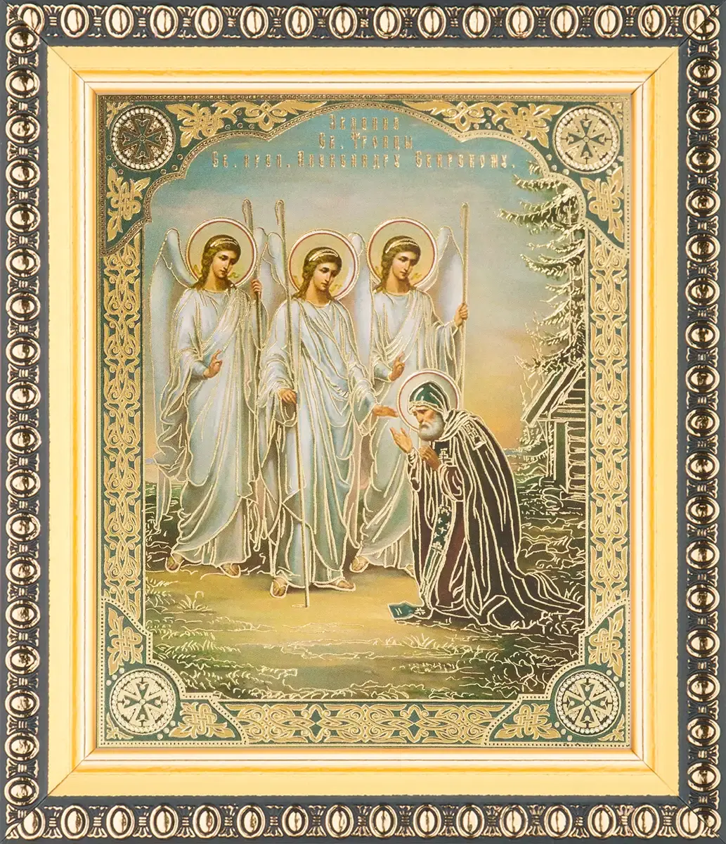 Икона "Явление Св.Троицы Александру Свирскому" 10х12 в раме 13х15