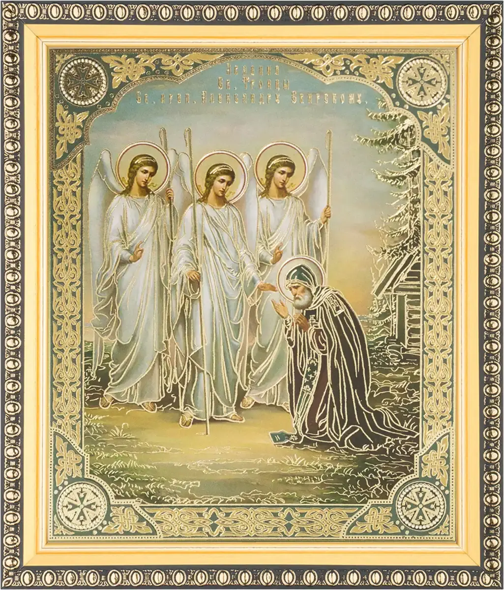 Икона "Явление Св.Троицы Александру Свирскому" 15х18 в раме 18х21