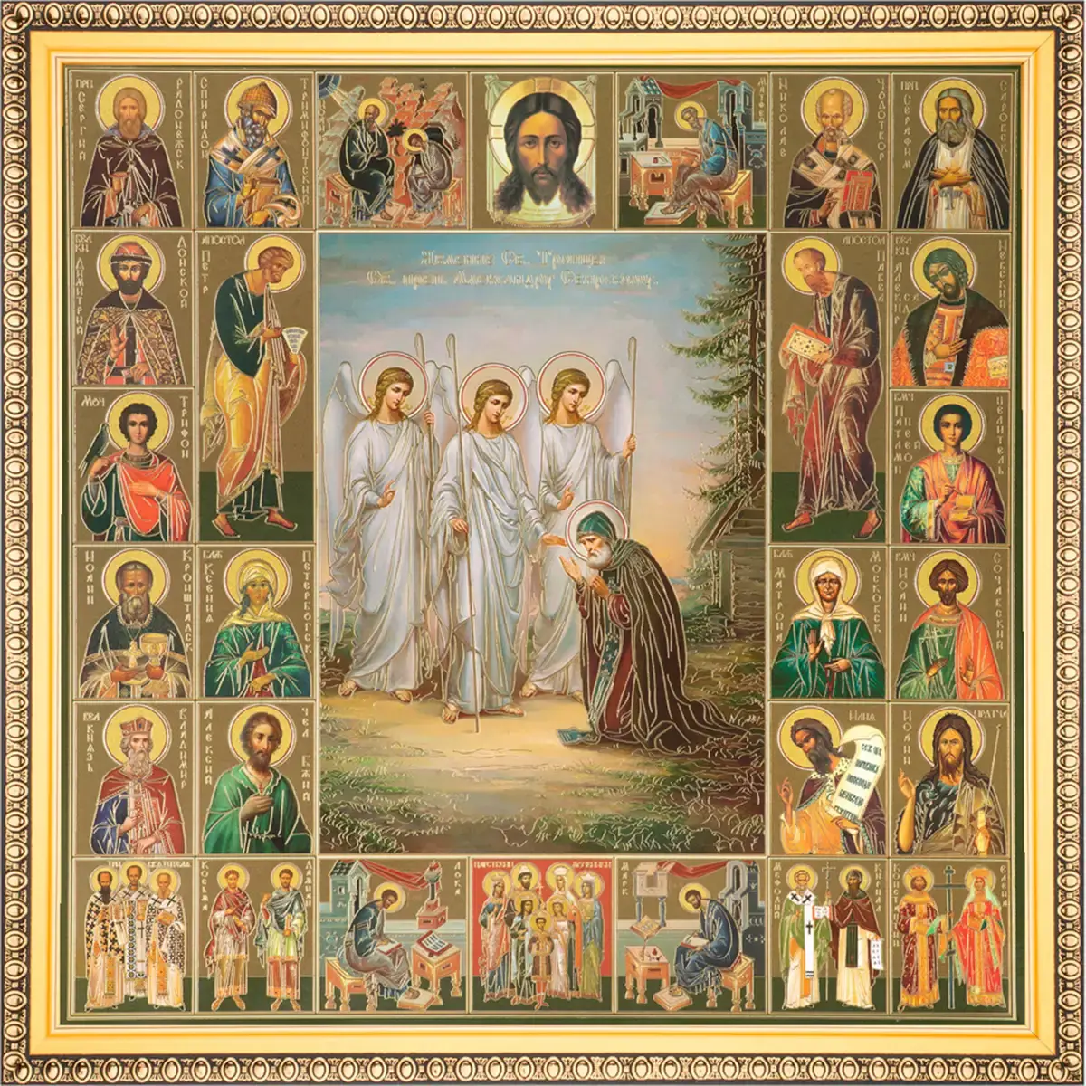 Икона "Явление Св.Троицы Александру Свирскому", рама 28х28, в коробке