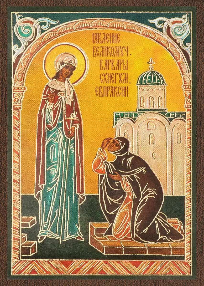 Икона "Явление вмч. Варвары схиигумении Евпраксии" 6х9 на МДФ-6