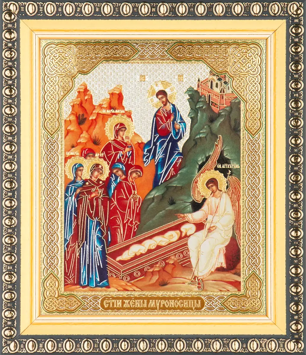 Икона "Жены-мироносицы у гроба Господня" 10х12 в раме 13х15