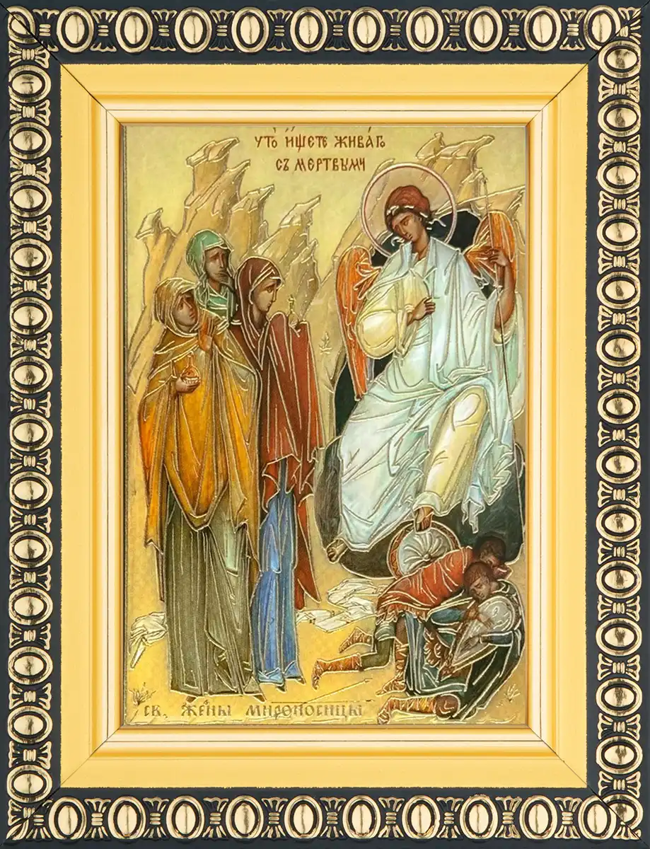 Икона "Жены-мироносицы у Гроба Господня" 6х9 в раме 8х11